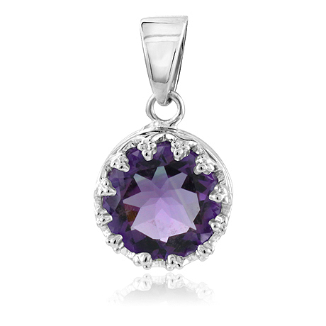 Runder Amethyst, gefasst in einem Anhänger aus Sterling-Silber.