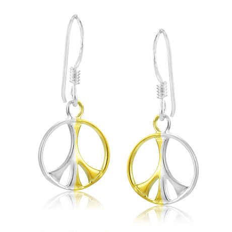 Ohrringe aus Sterling-Silber in Form des Peace-Zeichens, teilweise vergoldet.