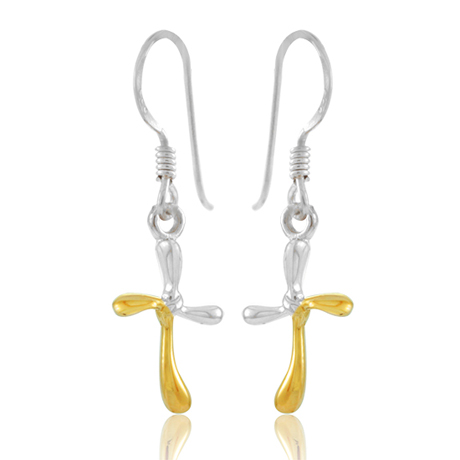 Ohrringe aus Sterling-Silber in Form eines Kreuzes, teilweise vergoldet.