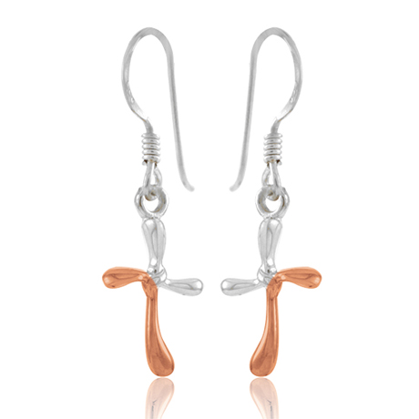 Ohrringe aus Sterling-Silber in Form eines Kreuzes, teilweise mit Rotgold vergoldet. + Siehe Produktdetails
