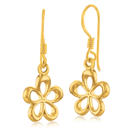 Ohrringe aus vergoldetem Sterling-Silber in Form einer fünfblättrigen Blume.
