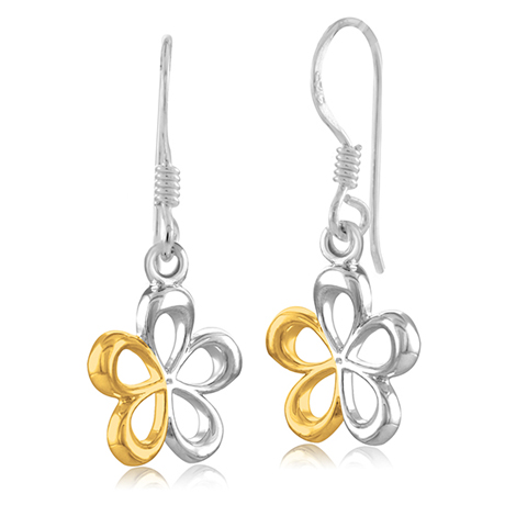 Ohrringe aus Sterling-Silber in Form einer fünfblättrigen Blume, teilweise vergoldet.
