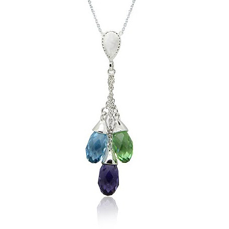 Tropfenförmiger Anhänger in Sterling-Silber, verziert mit kleinen klaren und pinkfarbenen Swarovski-...
