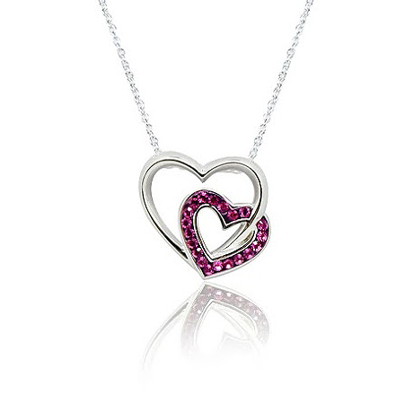 Roter herzförmiger Swarovski-Kristall, umrandet von kleinen klaren Kristallen, gefasst in einem Anhä...
