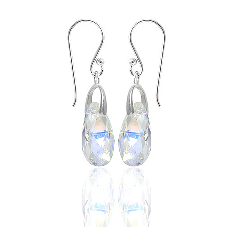 Herzförmiger Swarovski-Kristall, gefasst in Ohrringen aus Sterling-Silber.