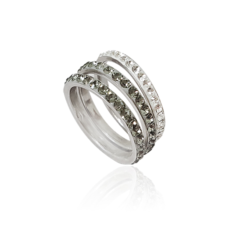 Drei Ringe aus Sterling-Silber, jeder verziert mit kleinen klaren, grünen oder grauen Swarovski-Kris...