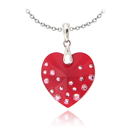 Rotfarbener Swarovski-Kristall in Herzform, verziert mit kleinen rotfarbenen und klaren Kristallen, ...