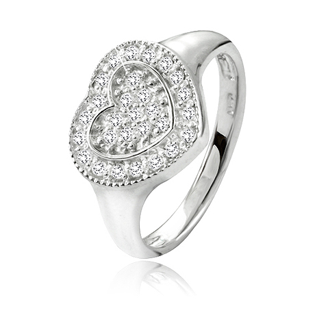 Ring aus rhodiniertem Sterling-Silber, besetzt mit Herzen und hellblauen Zirkonia.