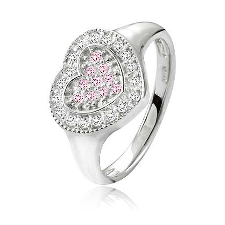 Herzförmiger Ring aus rhodiniertem Sterling-Silber, verziert mit klaren Zirkonia.