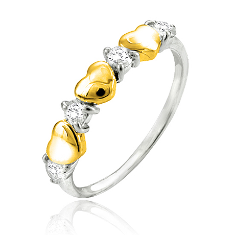 Herzförmiger Ring aus teilweise rhodiniertem und vergoldetem Sterling-Silber, verziert mit klaren Zi...