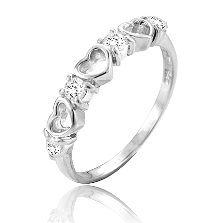 Ring aus rhodiniertem Sterling-Silber mit drei hohlen Herzen, besetzt mit hellblauen Zirkonia.