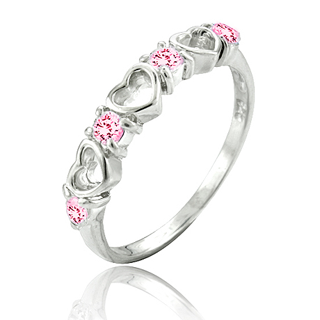 Herzförmiger Ring aus rhodiniertem Sterling-Silber, verziert mit rosafarbenen und klaren Zirkonia.