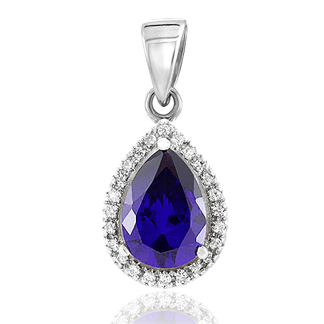 Wunderschöner roter Zirkonia in Tropfenform, gefasst in einem Anhänger aus rhodiniertem Sterling-Sil...