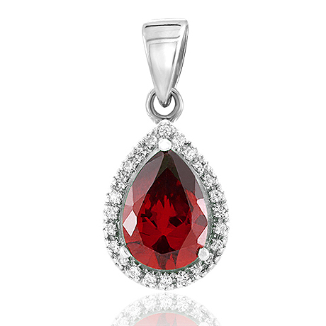 Wunderschöner roter Zirkonia in Tropfenform, gefasst in einem Anhänger aus rhodiniertem Sterling-Sil...