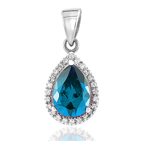 Wunderschöner klarer Zirkonia in Tropfenform, gefasst in einem Anhänger aus rhodiniertem Sterling-Si...