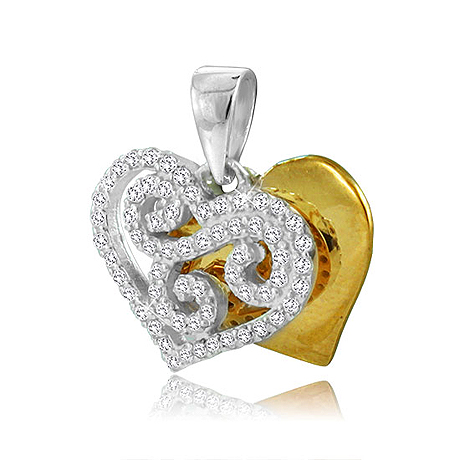 Anhänger aus Sterling-Silber, bestehend aus zwei sich deckenden Herzen, das hintere vergoldet, das v...