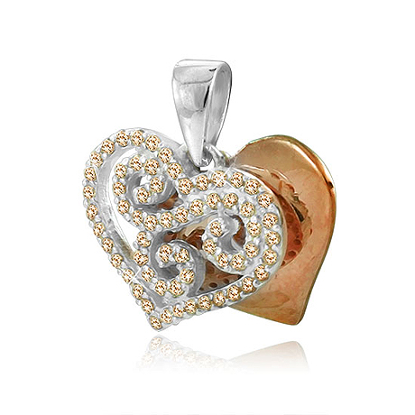 Herzförmiger Anhänger aus vergoldetem Sterling-Silber, halbseitig besetzt mit klaren Zirkonia.