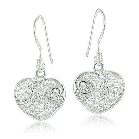 Herzförmiger Ring aus rhodiniertem Sterling-Silber, verziert mit klaren Zirkonia.