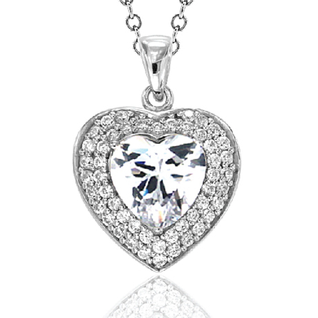 Anhänger aus Sterling-Silber mit einem grossen, herzförmigen High Grade Weissen Zirkonia in der Mitt...